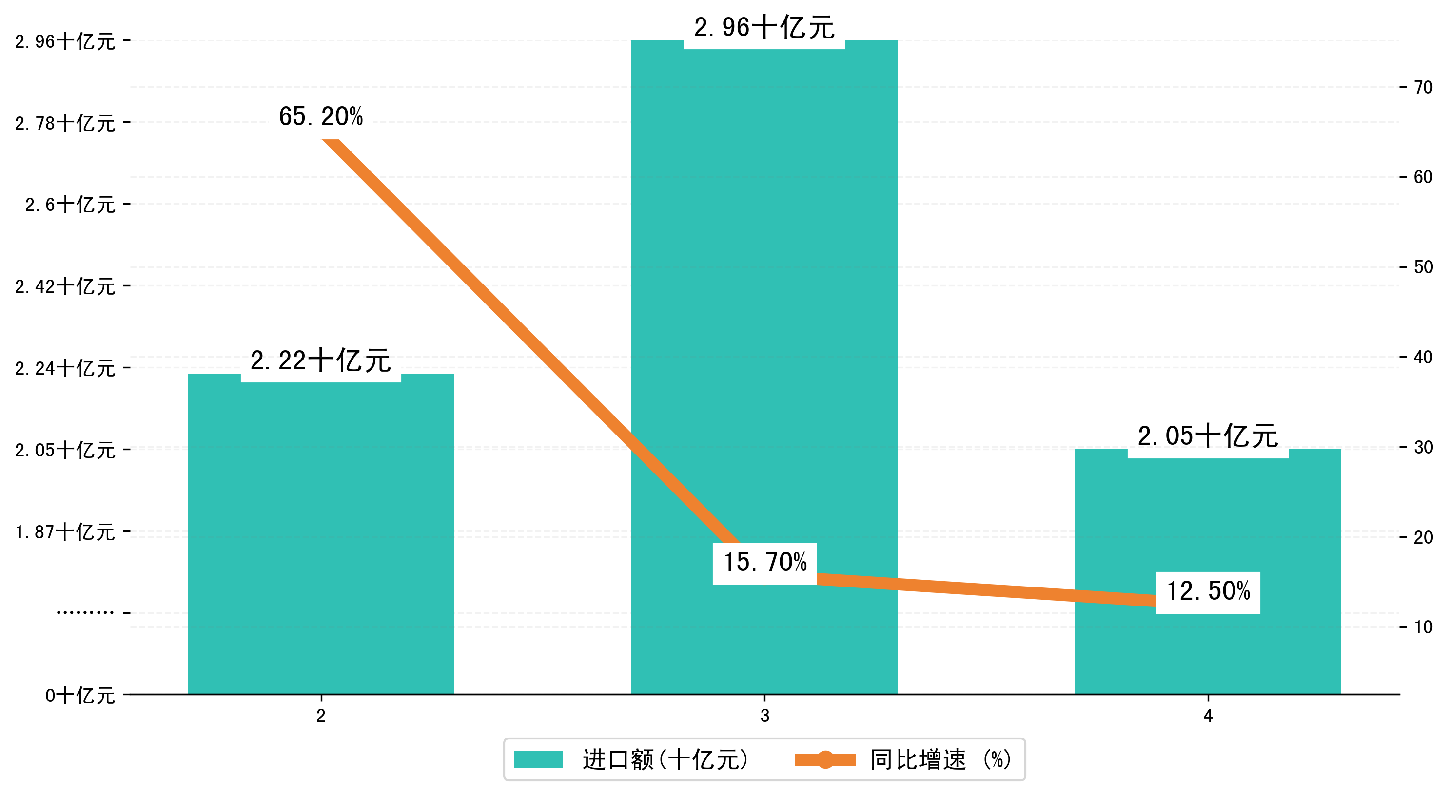 以美元计,2025年1-4月贵州省进口额为13,7728.4062万美元,相比上年同期增加了1,3495.3154万美元,同比增加11.30%。