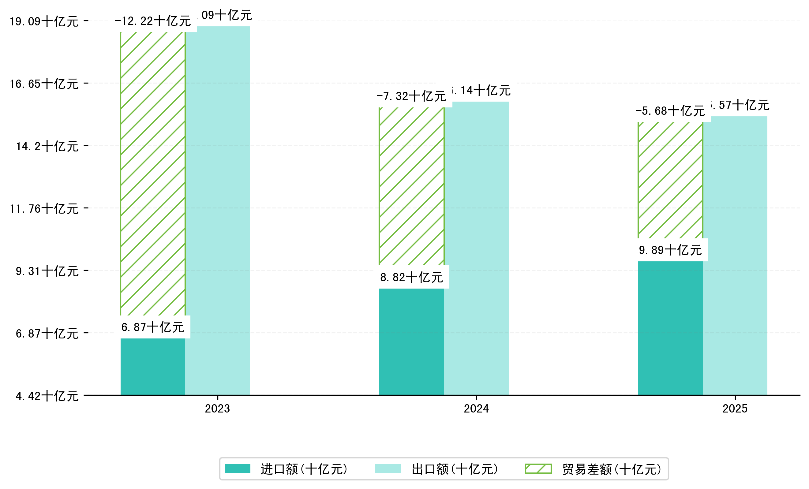 以美元计,2025年1-4月贵州省贸易差额为7,9148,2614万美元(贸易顺差),相比上年同期减少了2,3512,3324万美元,同比减少-22.9%。
