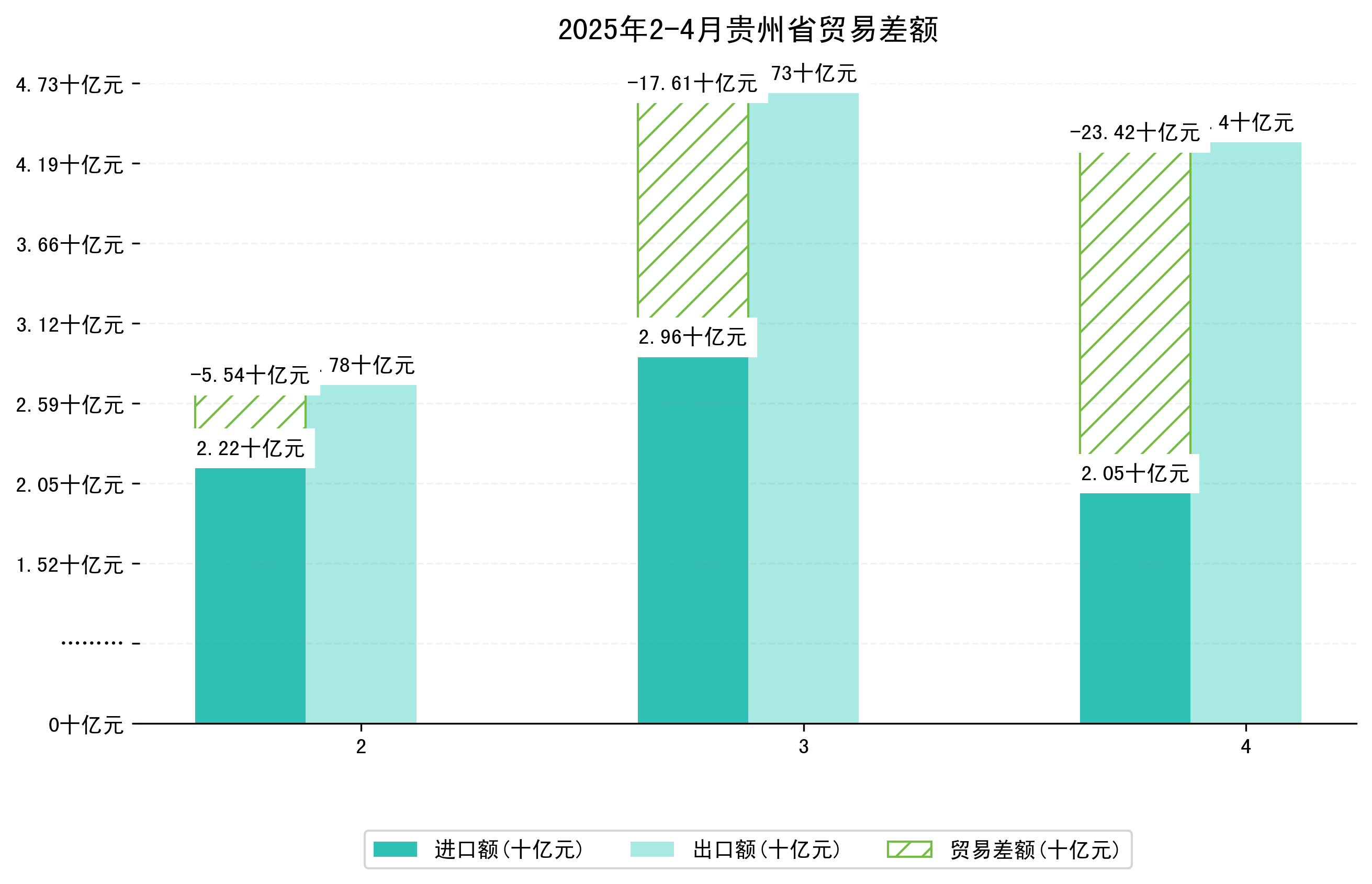 2025年4月贵州省进出口总额及进出口差额统计分析