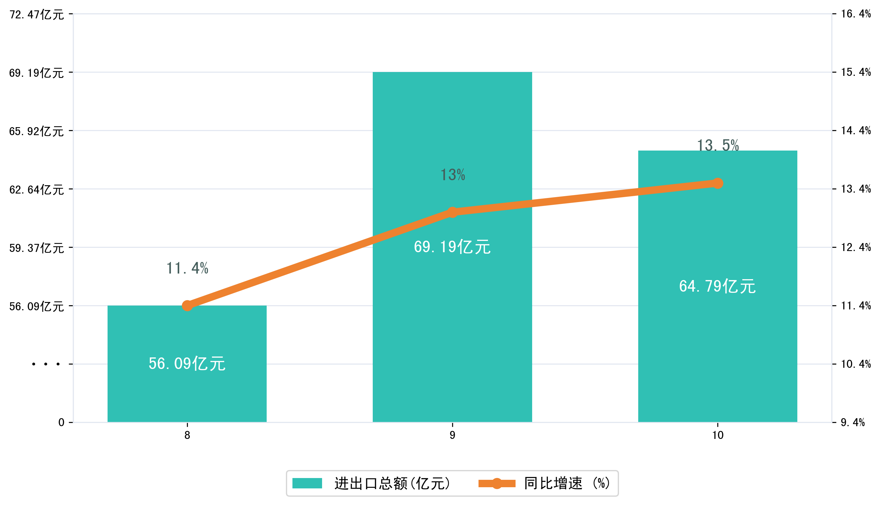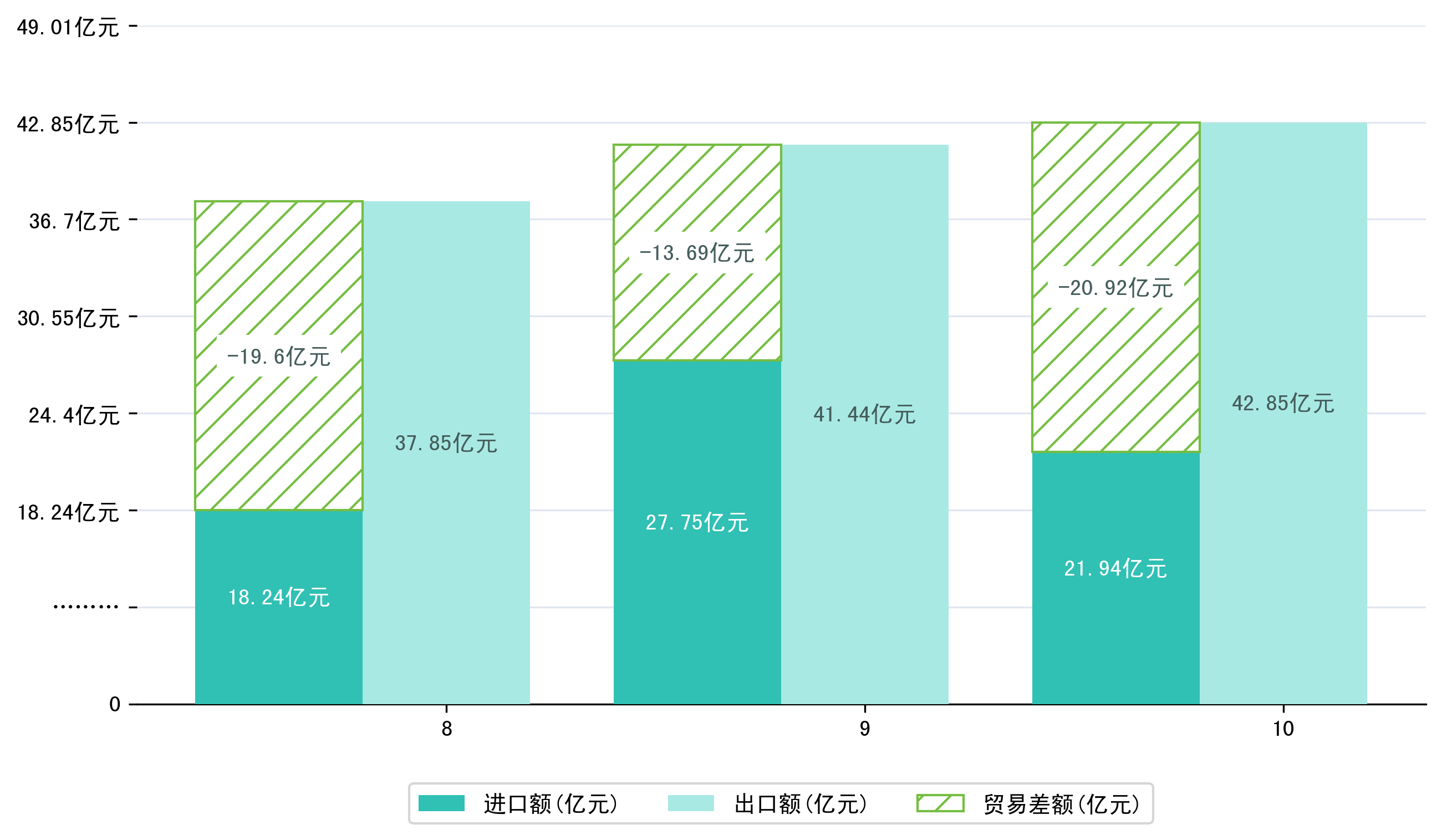 (图一:2025年8-10月贵州省进出口总额)