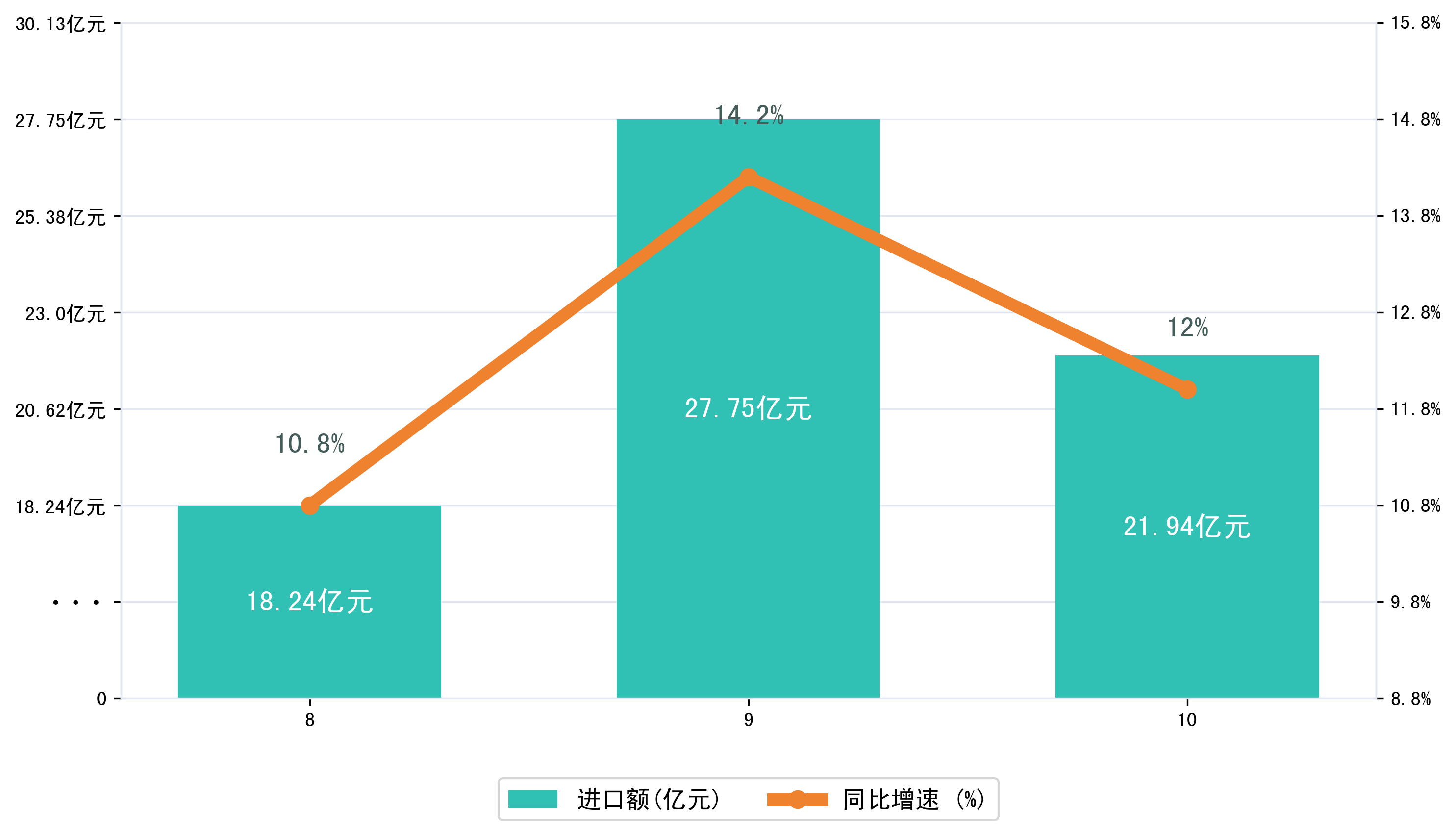 (图三:2025年8-10月贵州省进口额)