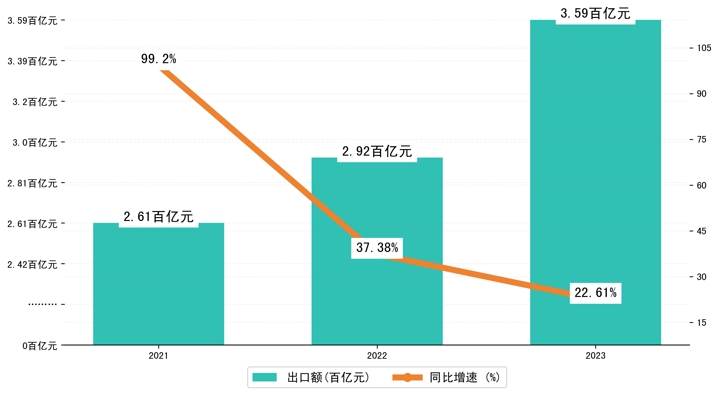 以人民币计,2023年1-1月湖北省出口额为358,6238.3379万元,相比上年同期增加了66,1435.5925万元,同比增加了22.80%。