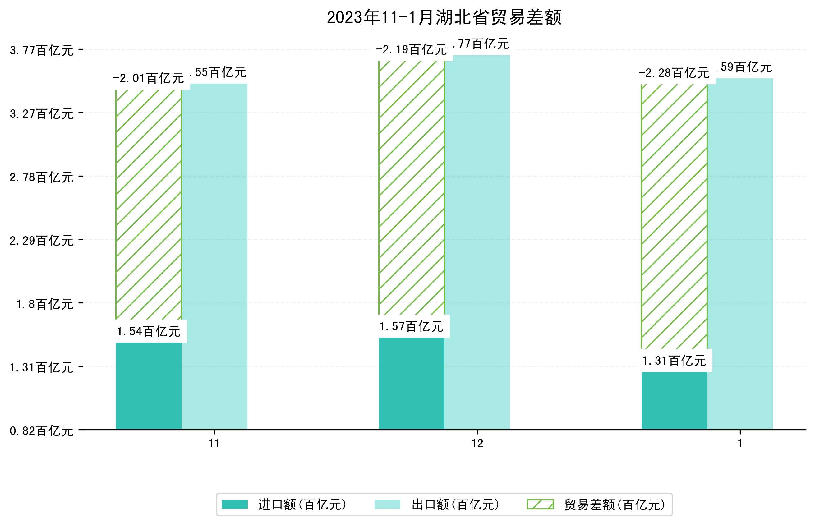 (图四:2023年11-1月湖北省贸易差额)