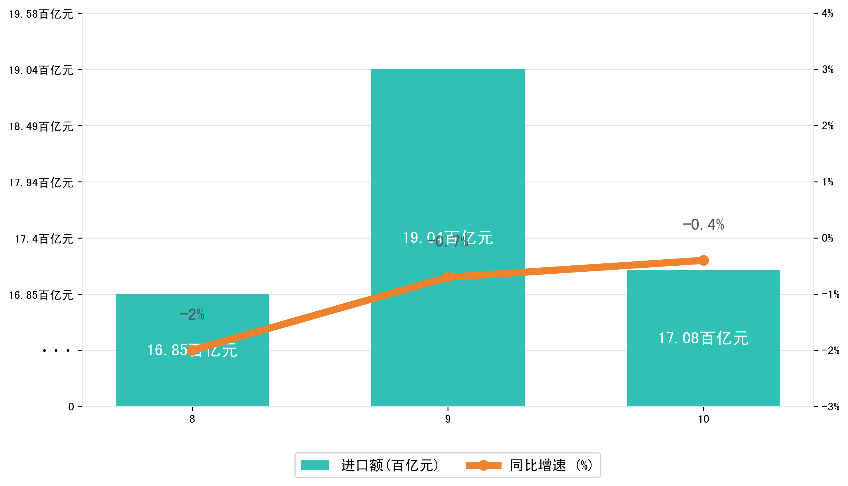 以人民币计,2025年10月江苏省进口额为1708,2474.1452万元,相比上月减少了195,4734.4788万元;相比上年同期增加了26,7319.8803万元,同比减少了-0.40%。