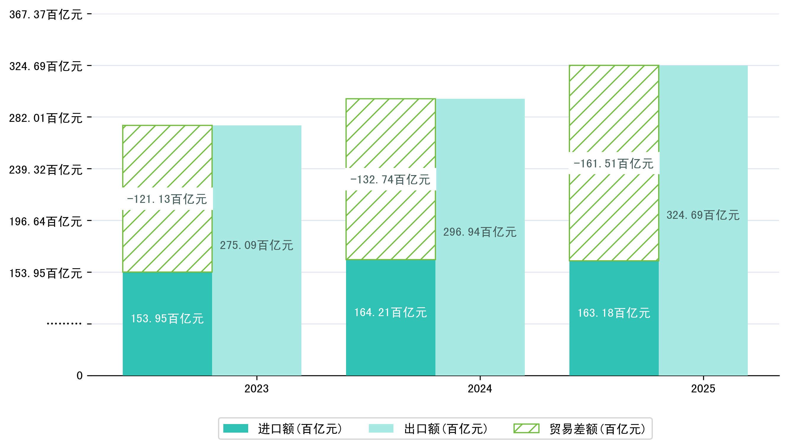 以人民币计,2025年1-10月江苏省贸易差额为1,6150,5185,4033万元(贸易顺差),相比上年同期增加了2876,9642,2294万元,同比增加21.67%。