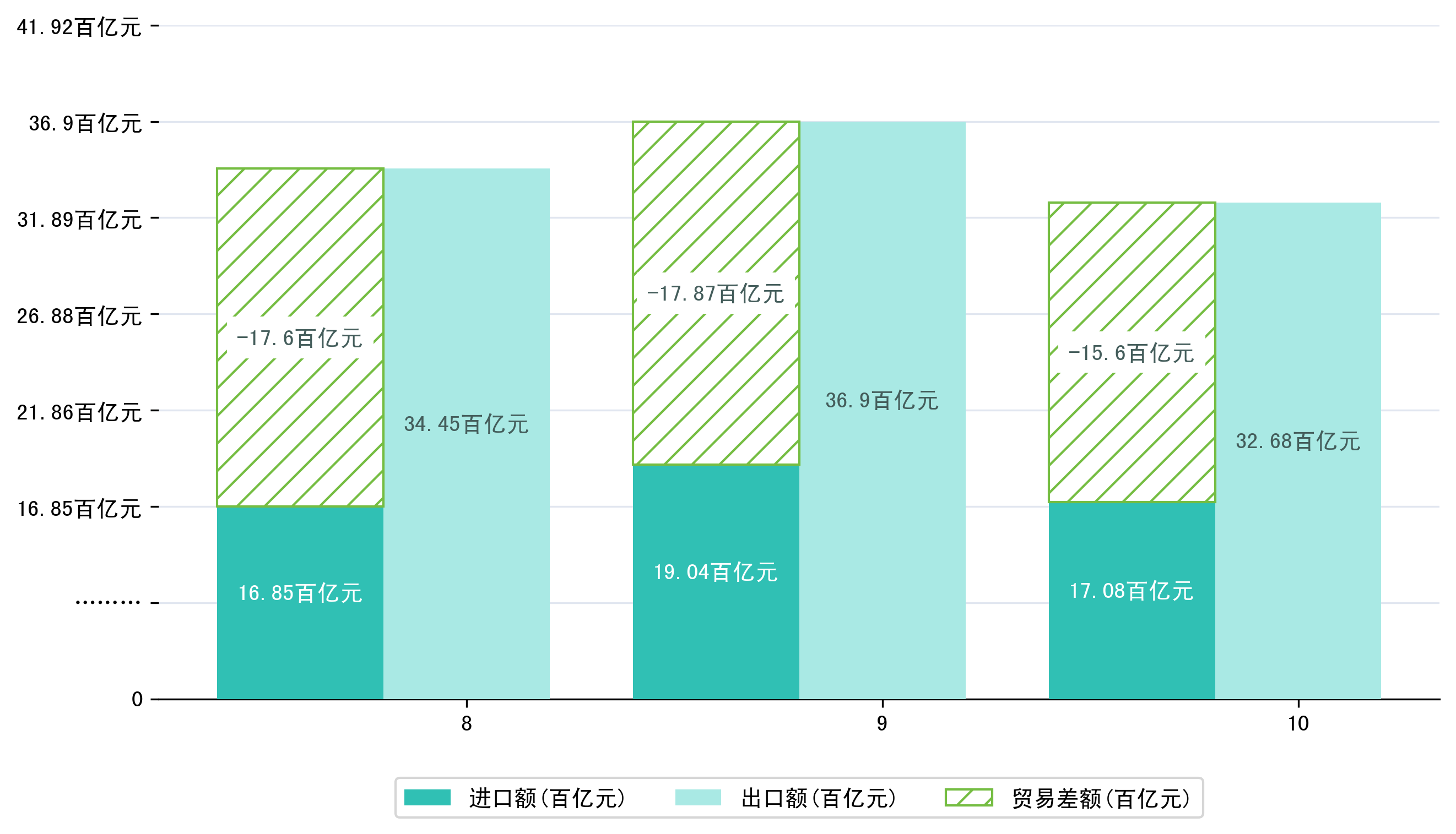 以人民币计,2025年10月江苏省贸易差额为1560,1381,3772万元(贸易顺差),相比上月减少了226,6263,0263万元,即30,9108,0745万美元;相比上年同期增加了24,6770,6455万元,同比增加1.61%。
