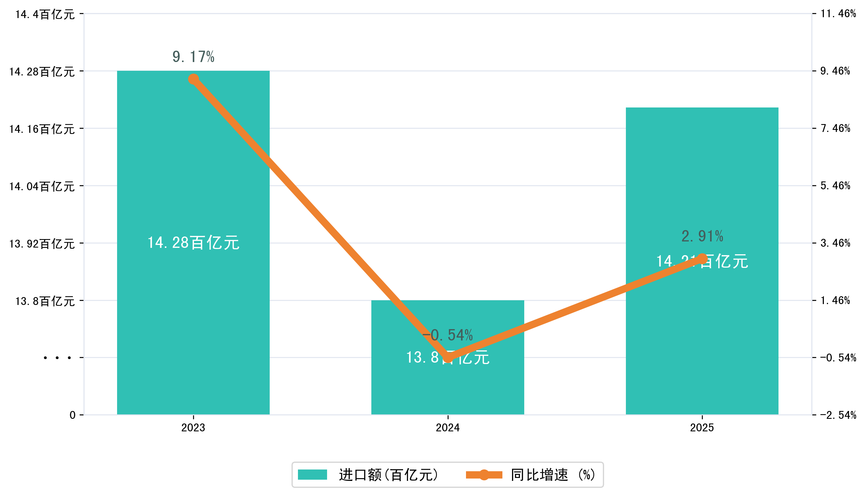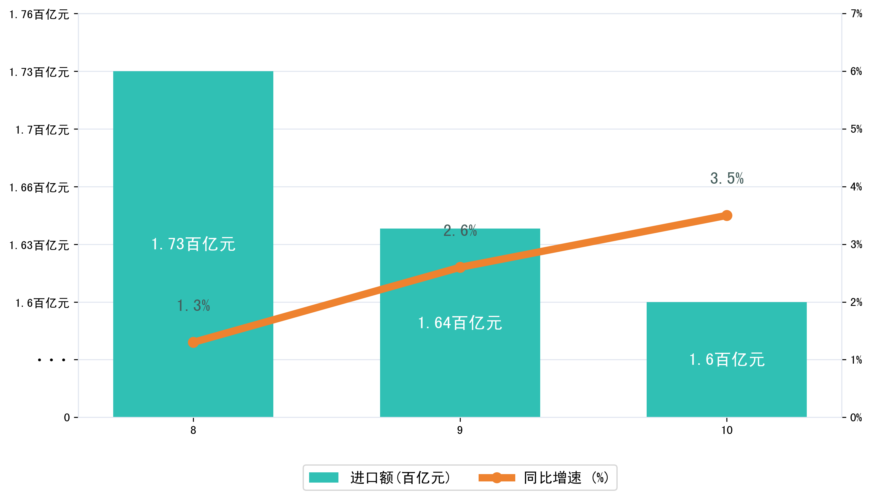 以人民币计,2025年1-10月江西省进口额为1420,6120.9166万元,相比上年同期增加了40,2354.0922万元,同比增加了3.50%。