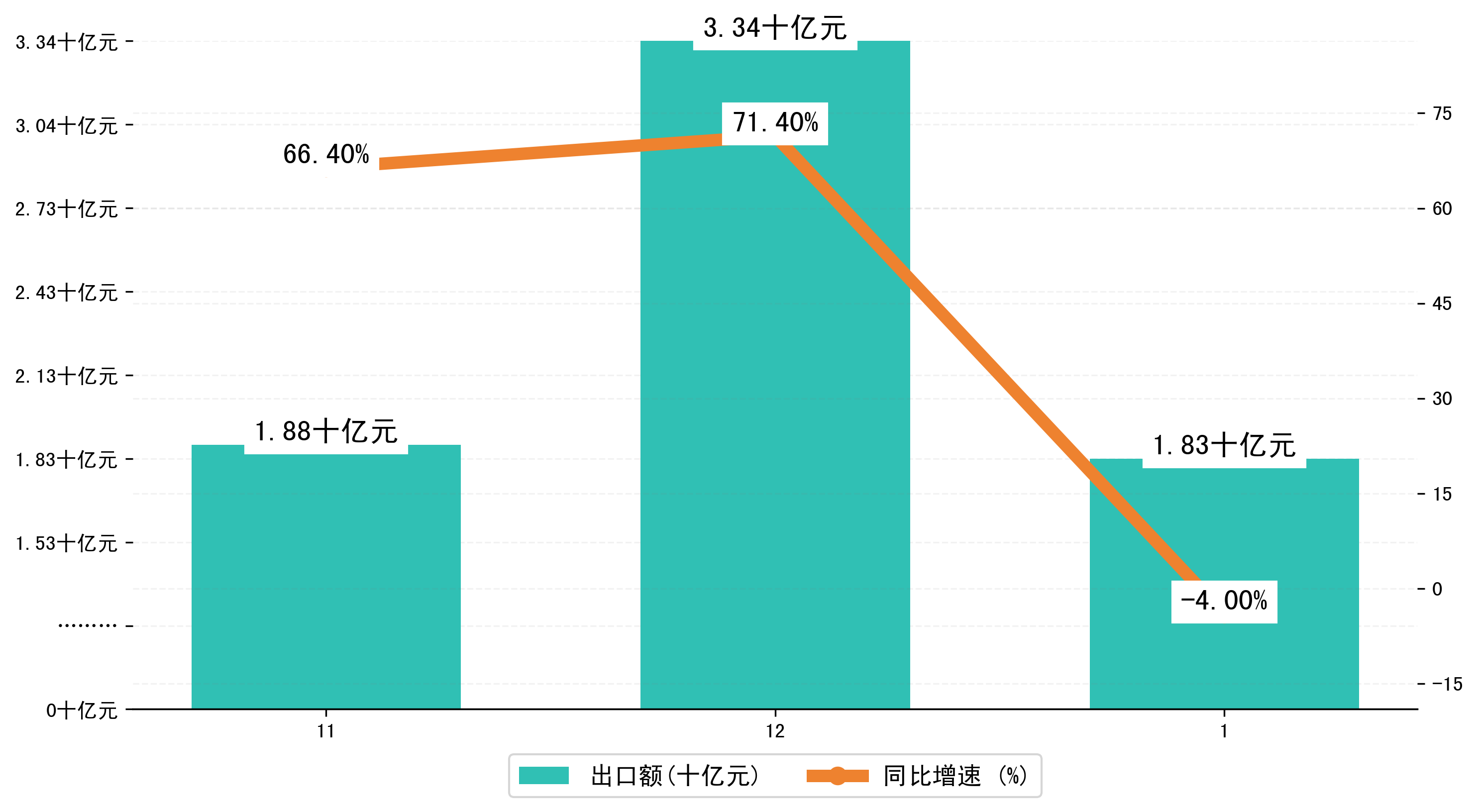 以人民币计,2024年1月海口市出口额为18,3101.604万元,相比上月减少了15,0547.3871万元;相比上年同期减少了7732.1462万元,同比减少了-4.00%。