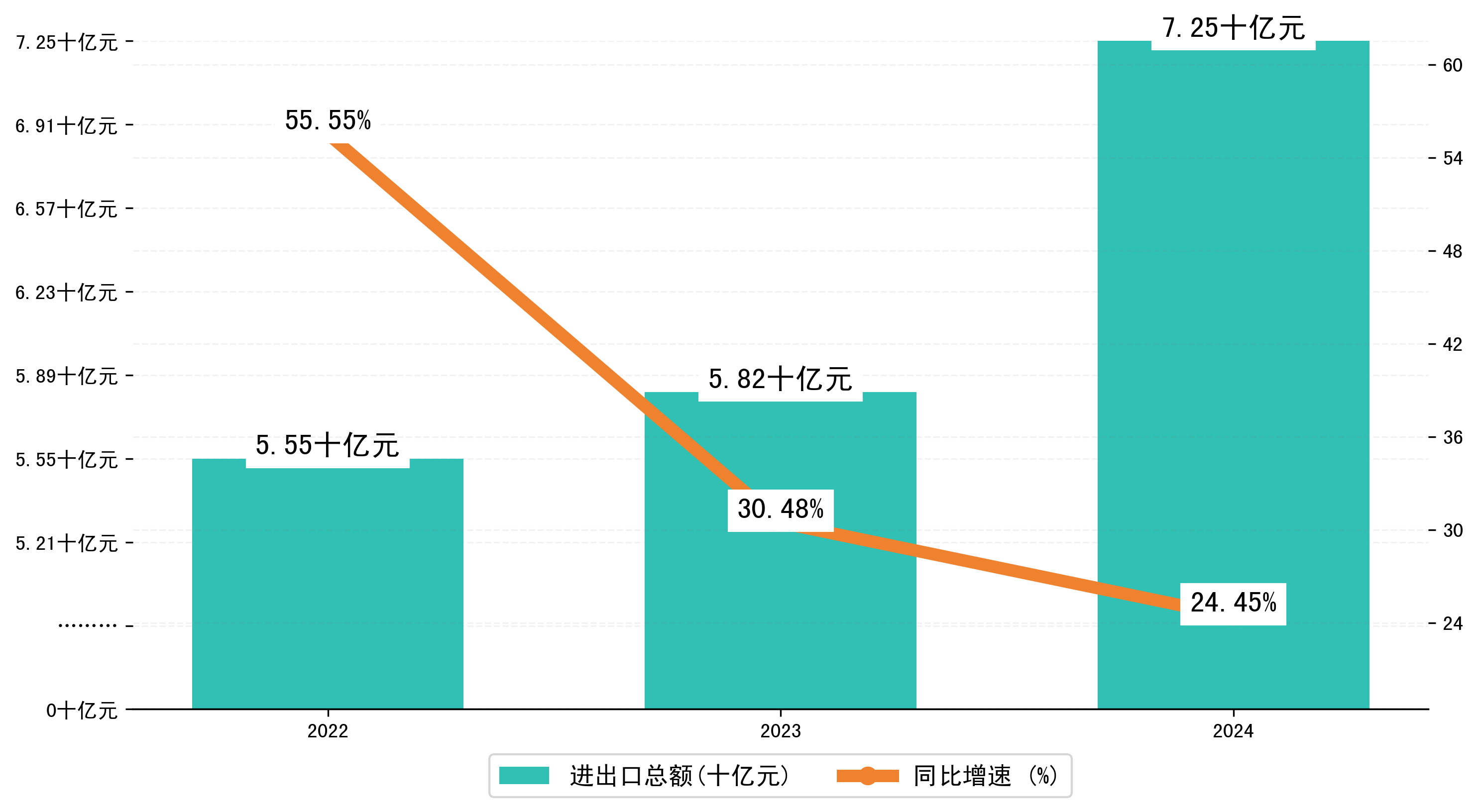以人民币计,2024年1-1月海口市进出口总额为72,4569.7732万元,相比上年同期增加了14,2333.2239万元,同比增加了24.30%。
