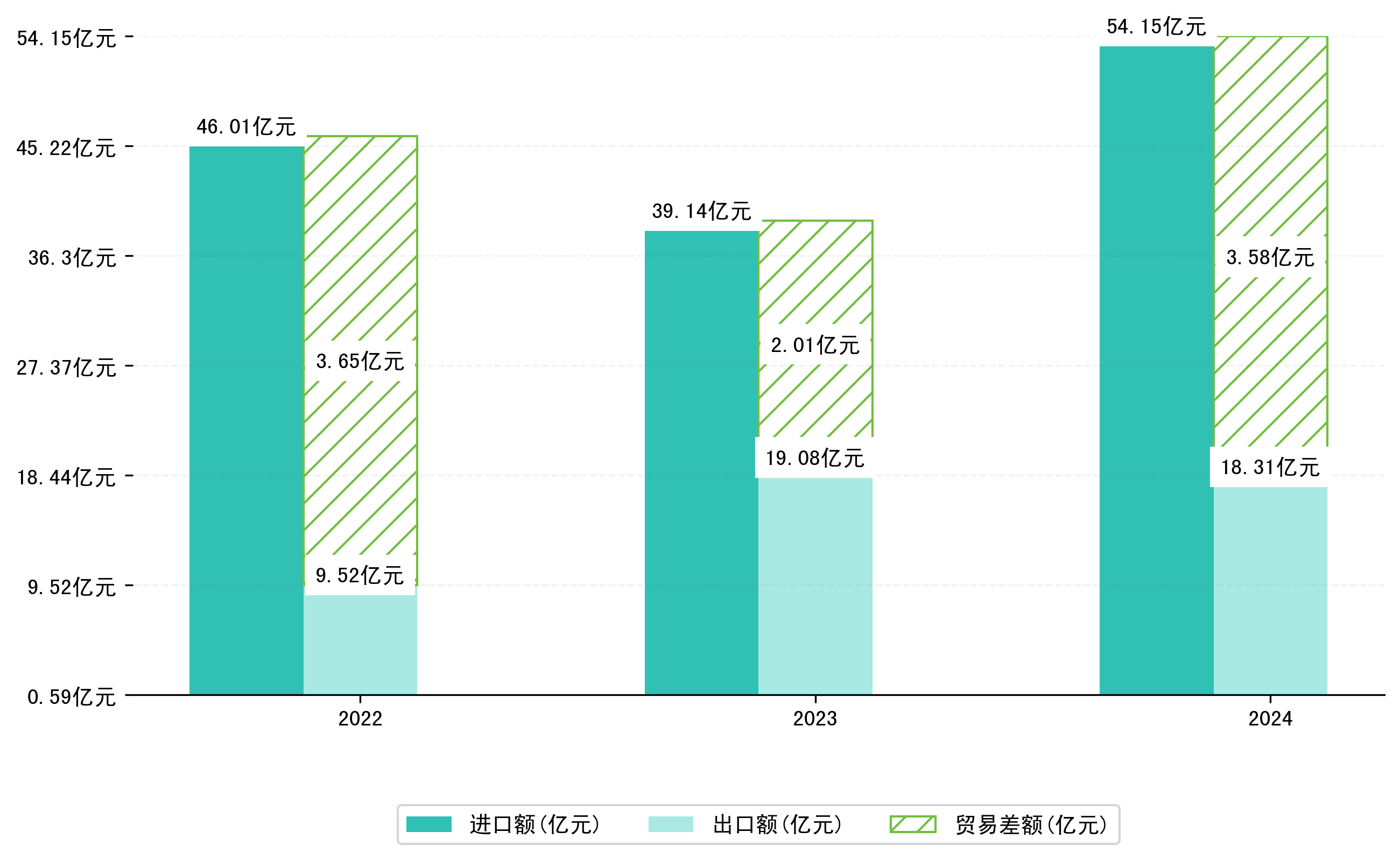 以美元计,2024年1-1月海口市贸易差额为5,0463,6128万美元(贸易逆差),相比上年同期减少了2,1674,7352万美元,同比减少75.29%。
