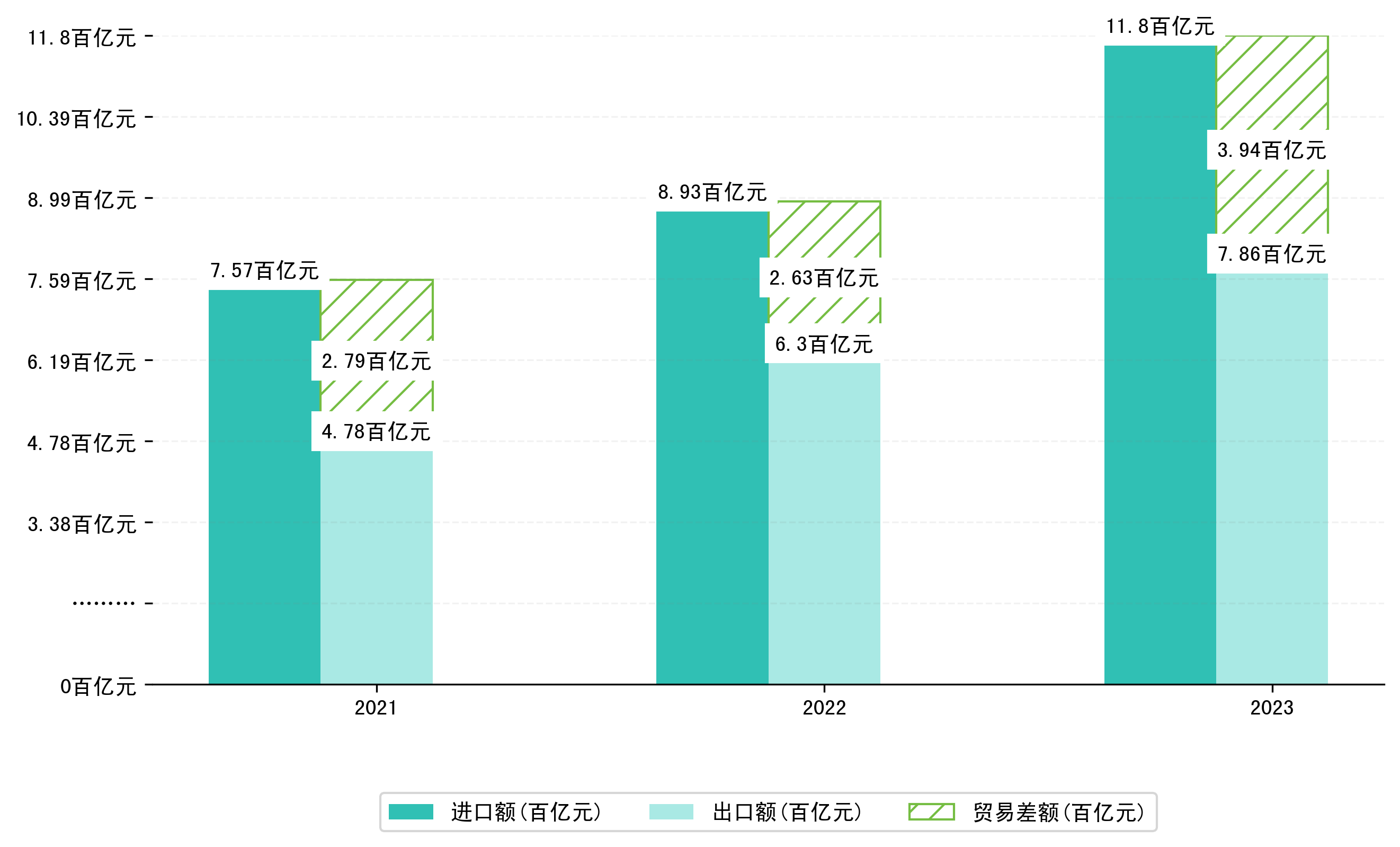 以人民币计,2023年12月内蒙古自治区贸易差额为29,7501,7344万元(贸易逆差),相比上月增加了1,8918,1371万元,即2315,4994万美元;相比上年同期增加了2,0211,5534万元,同比增加-6.36%。