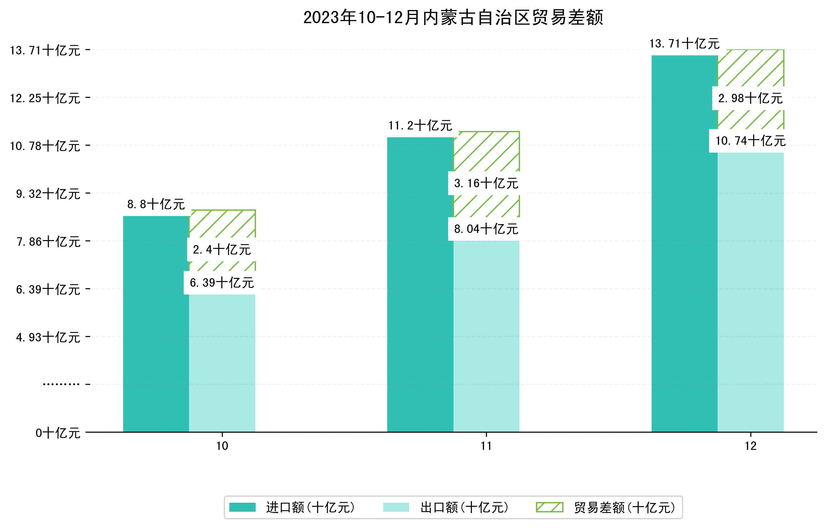 (图一:2023年10-12月内蒙古自治区进出口总额)