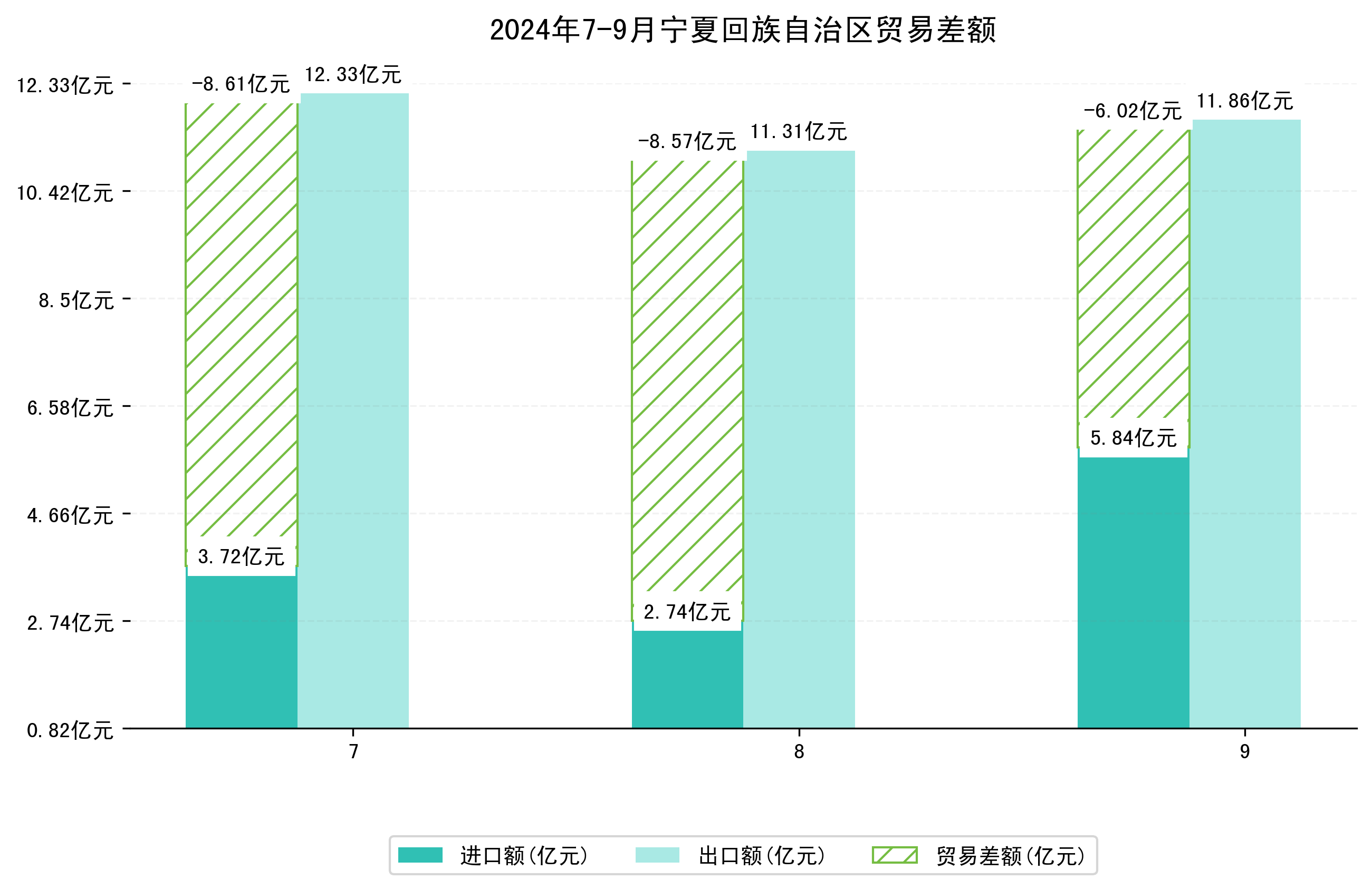 (图一:2024年7-9月宁夏回族自治区进出口总额)