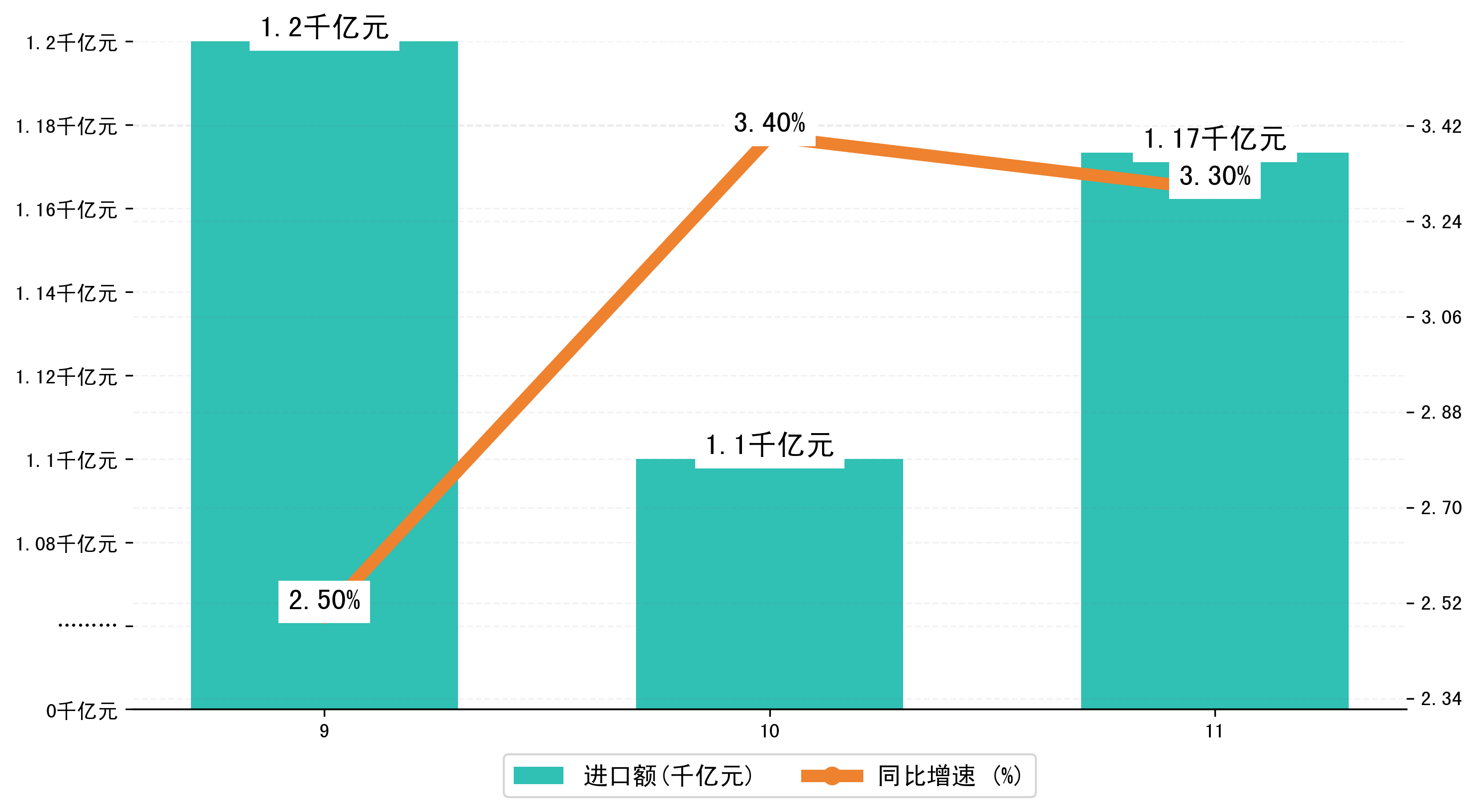 以人民币计,2023年1-11月山东省进口额为1,2084,7109.196万元,相比上年同期增加了287,4963.1386万元,同比增加了3.30%。