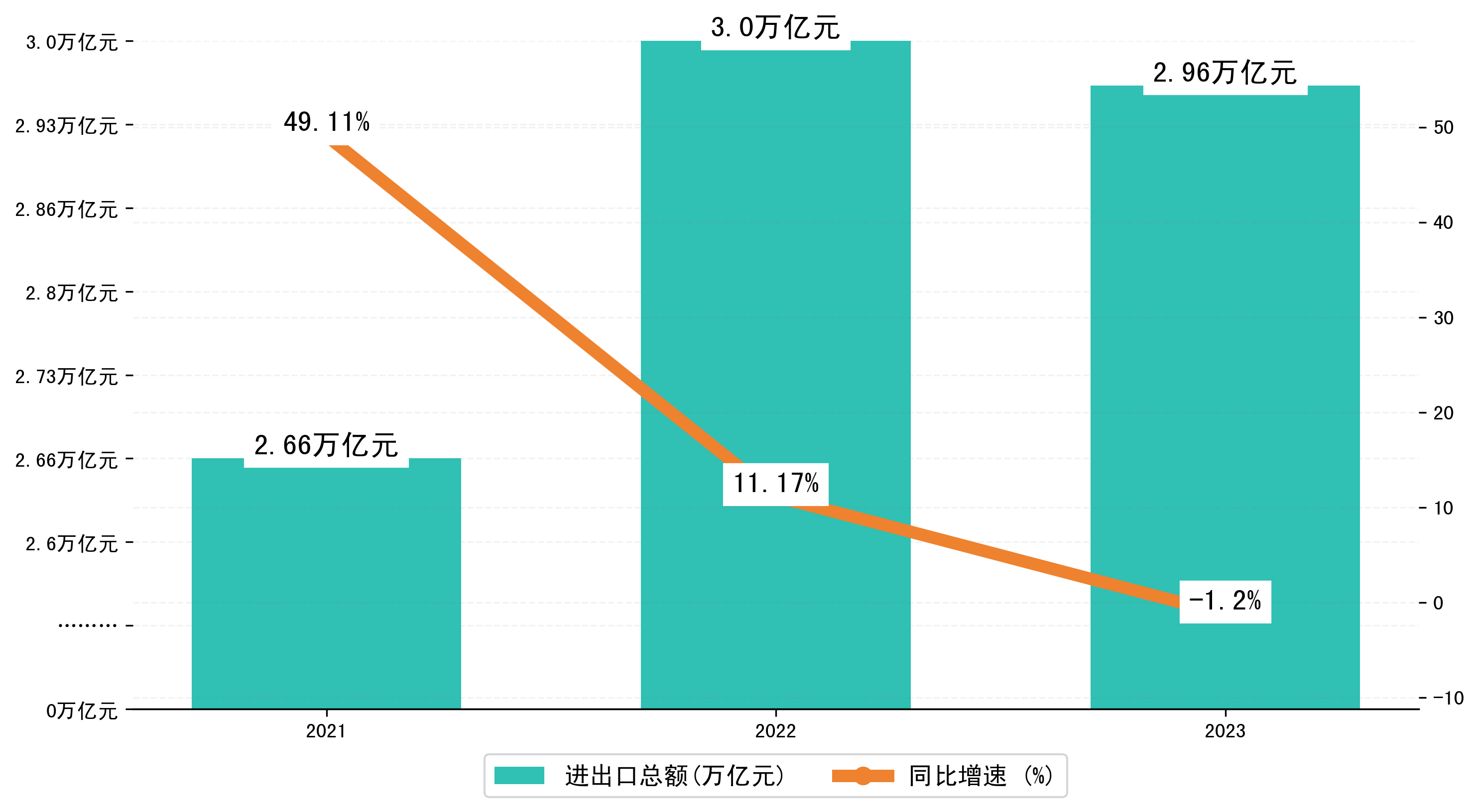 以人民币计,2023年11月山东省进出口总额为2807,9578.5041万元,相比上月增加了133,4236.4633万元;相比上年同期减少了202,9586.784万元,同比增加了2.20%。
