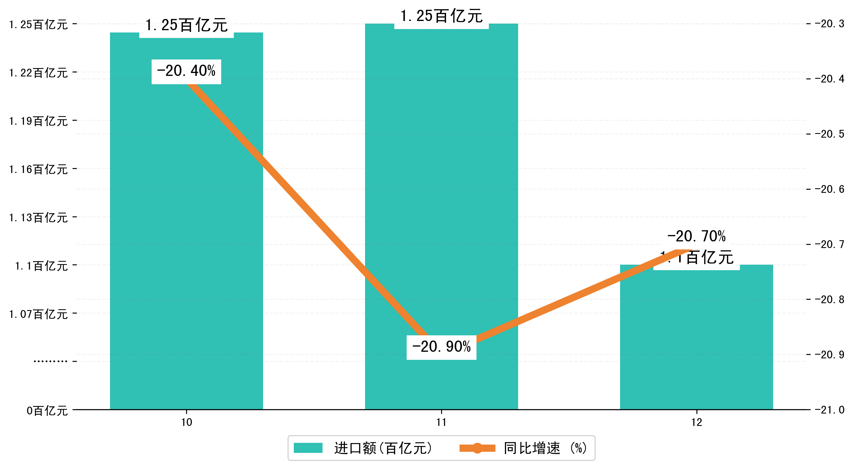 以人民币计,2023年12月陕西省进口额为110,4028.4002万元,相比上月减少了14,8721.4531万元;相比上年同期减少了25,9419.4184万元,同比减少了-20.70%。