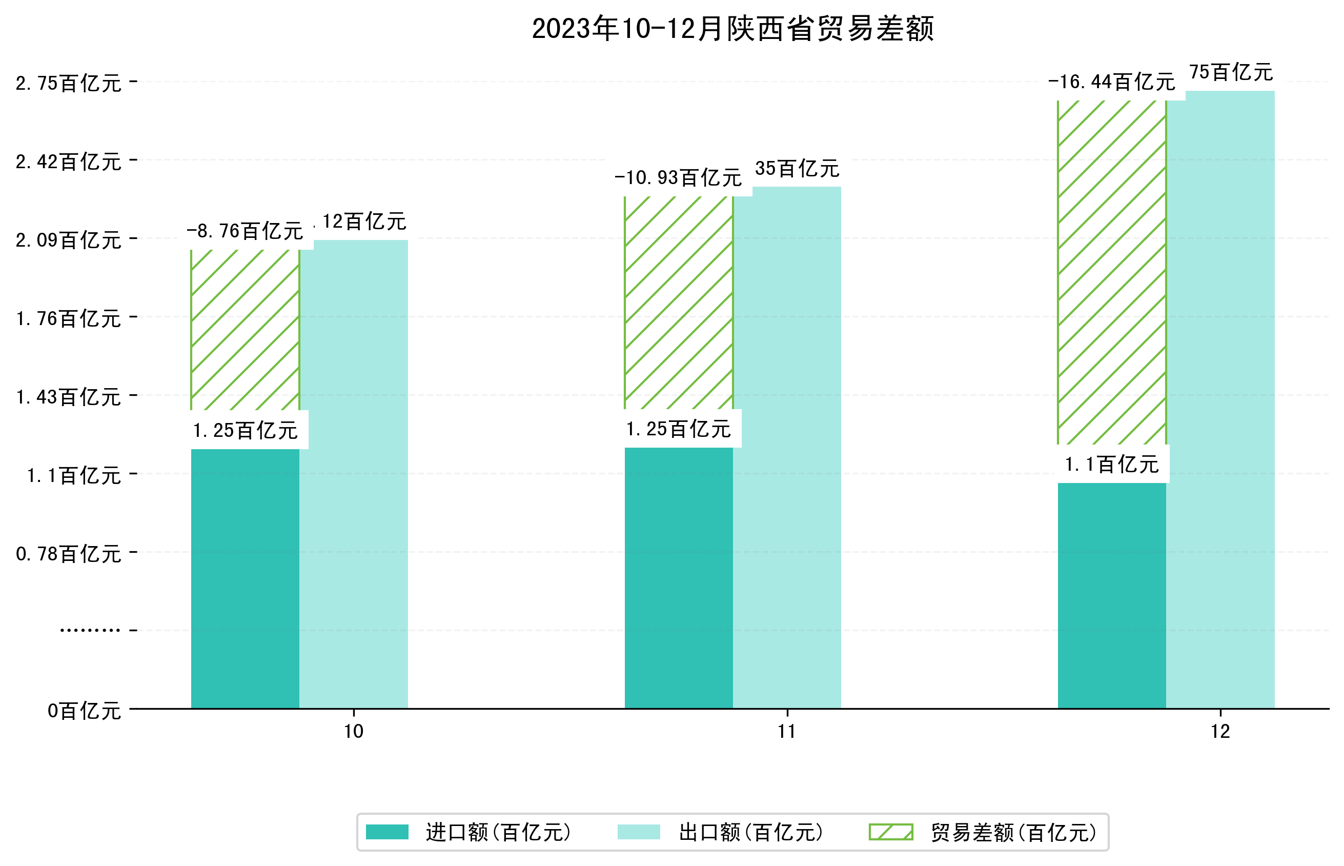 2023年12月陕西省进出口总额及进出口差额统计分析