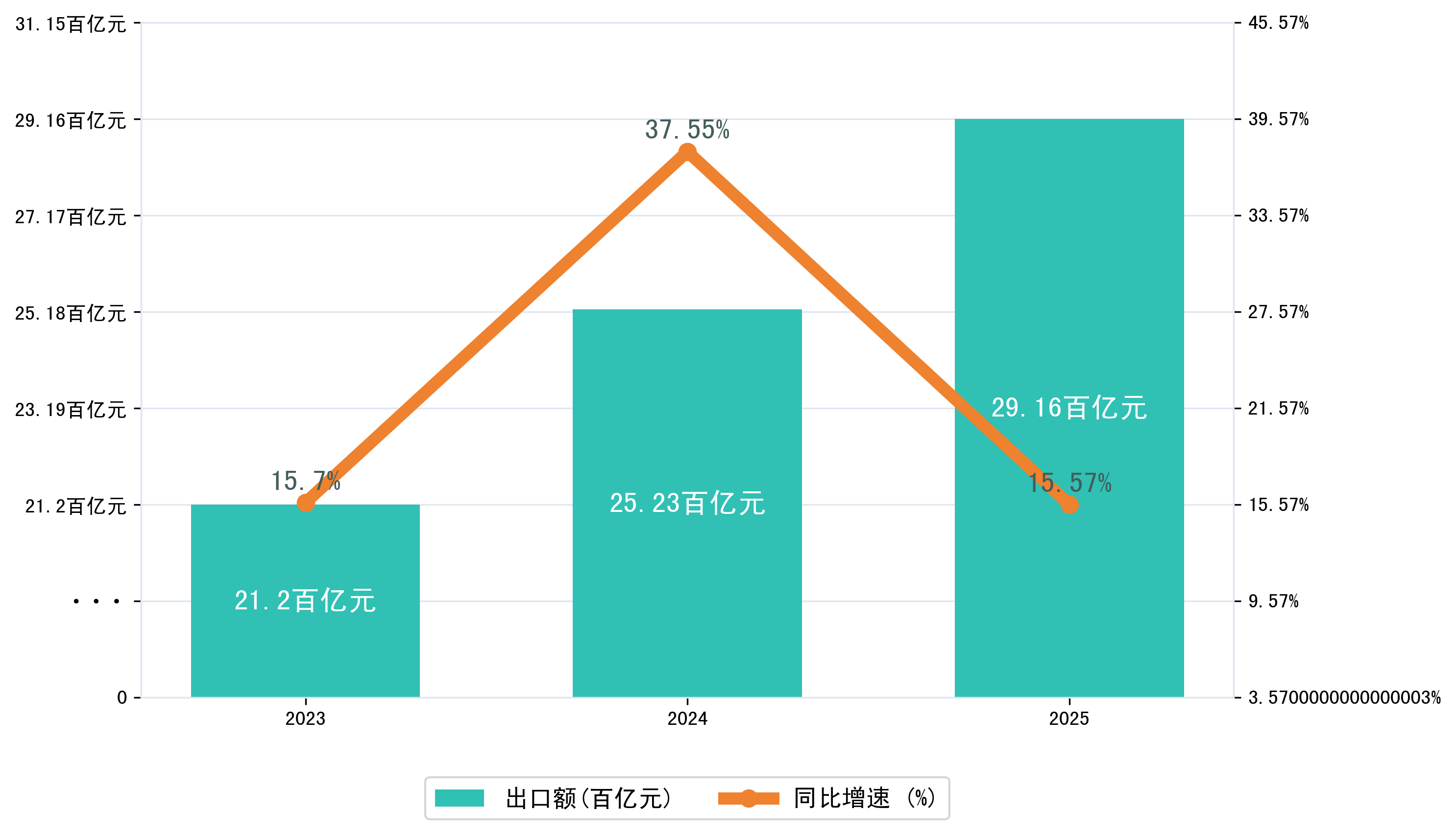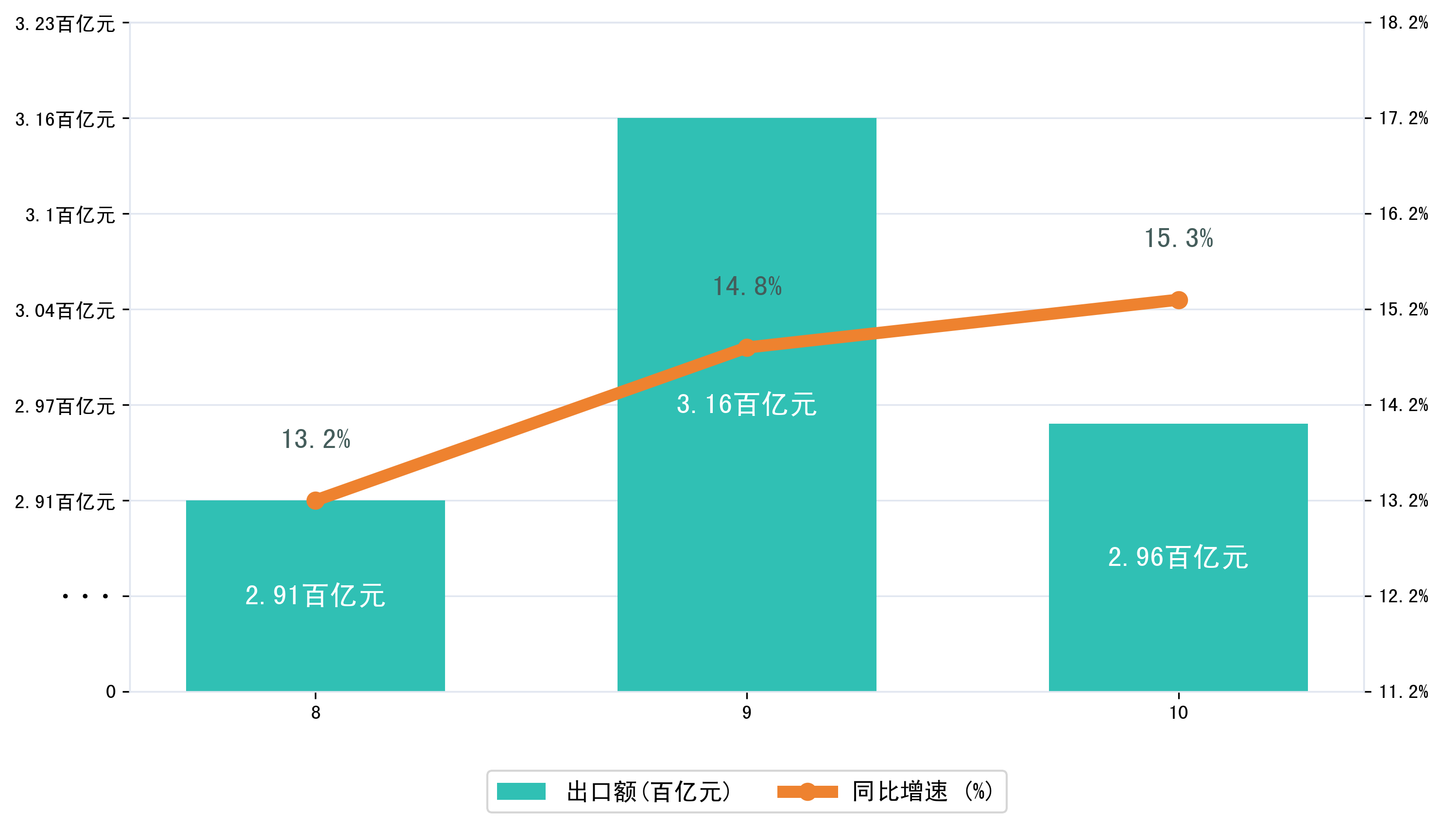 以人民币计,2025年1-10月陕西省出口额为2916,2101.249万元,相比上年同期增加了392,8949.6652万元,同比增加了15.30%。