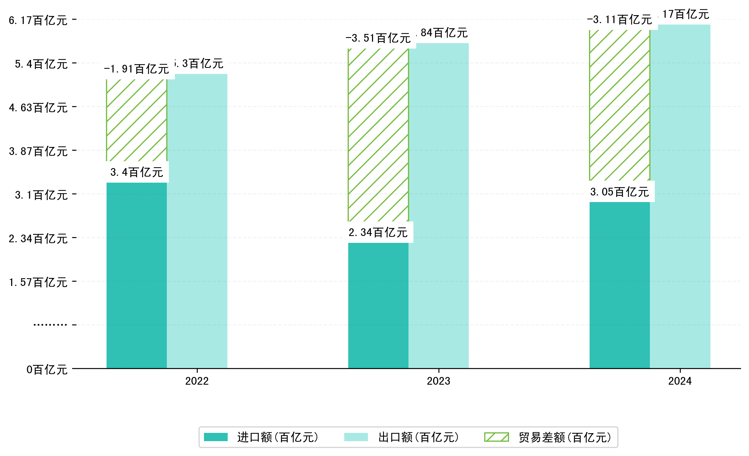 以美元计,2024年1-1月四川省贸易差额为43,7933,7619万美元(贸易顺差),相比上年同期减少了6,4047,7455万美元,同比减少-12.76%。