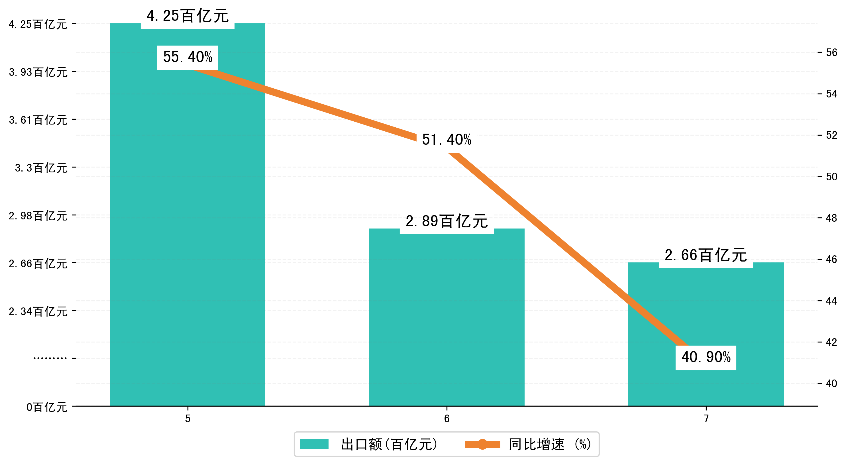 (图二:2024年5-7月新疆维吾尔自治区出口额)