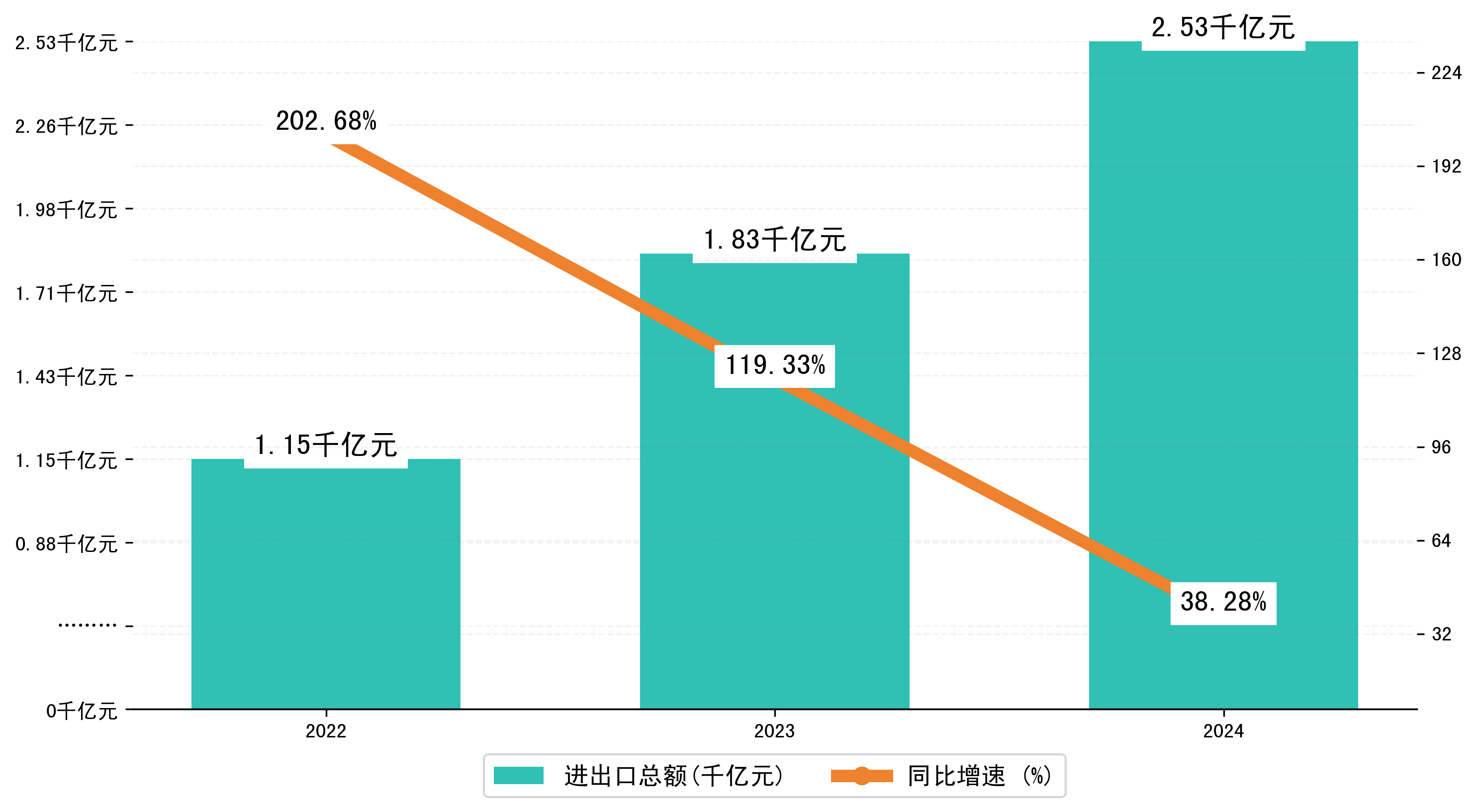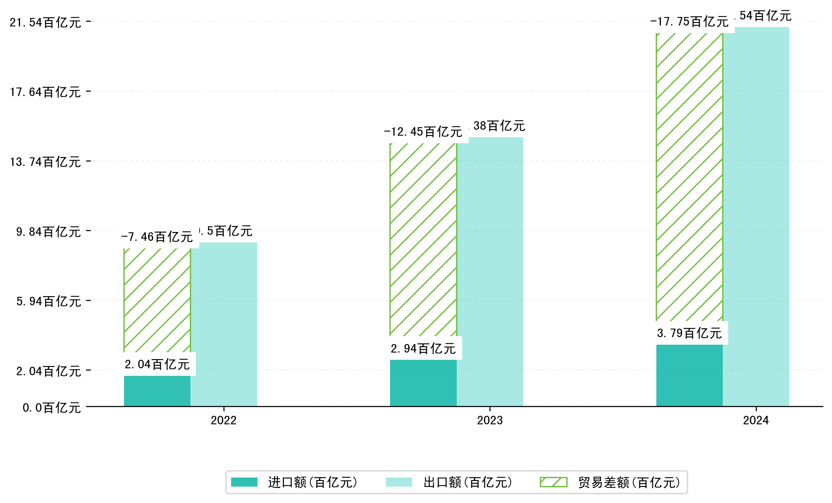 以美元计,2024年1-7月新疆维吾尔自治区贸易差额为249,8795,3063万美元(贸易顺差),相比上年同期增加了70,4349,7426万美元,同比增加39.25%。