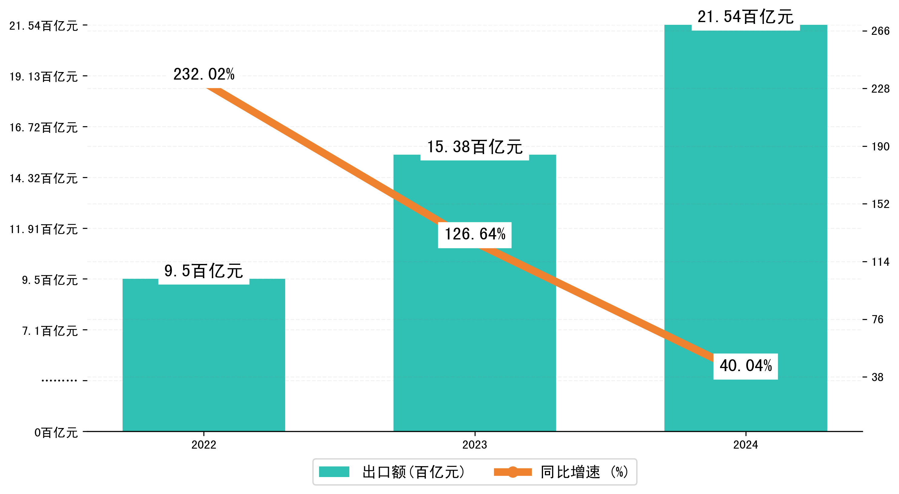以人民币计,2024年1-7月新疆维吾尔自治区出口额为2153,9002.6818万元,相比上年同期增加了615,7931.6339万元,同比增加了40.90%。
