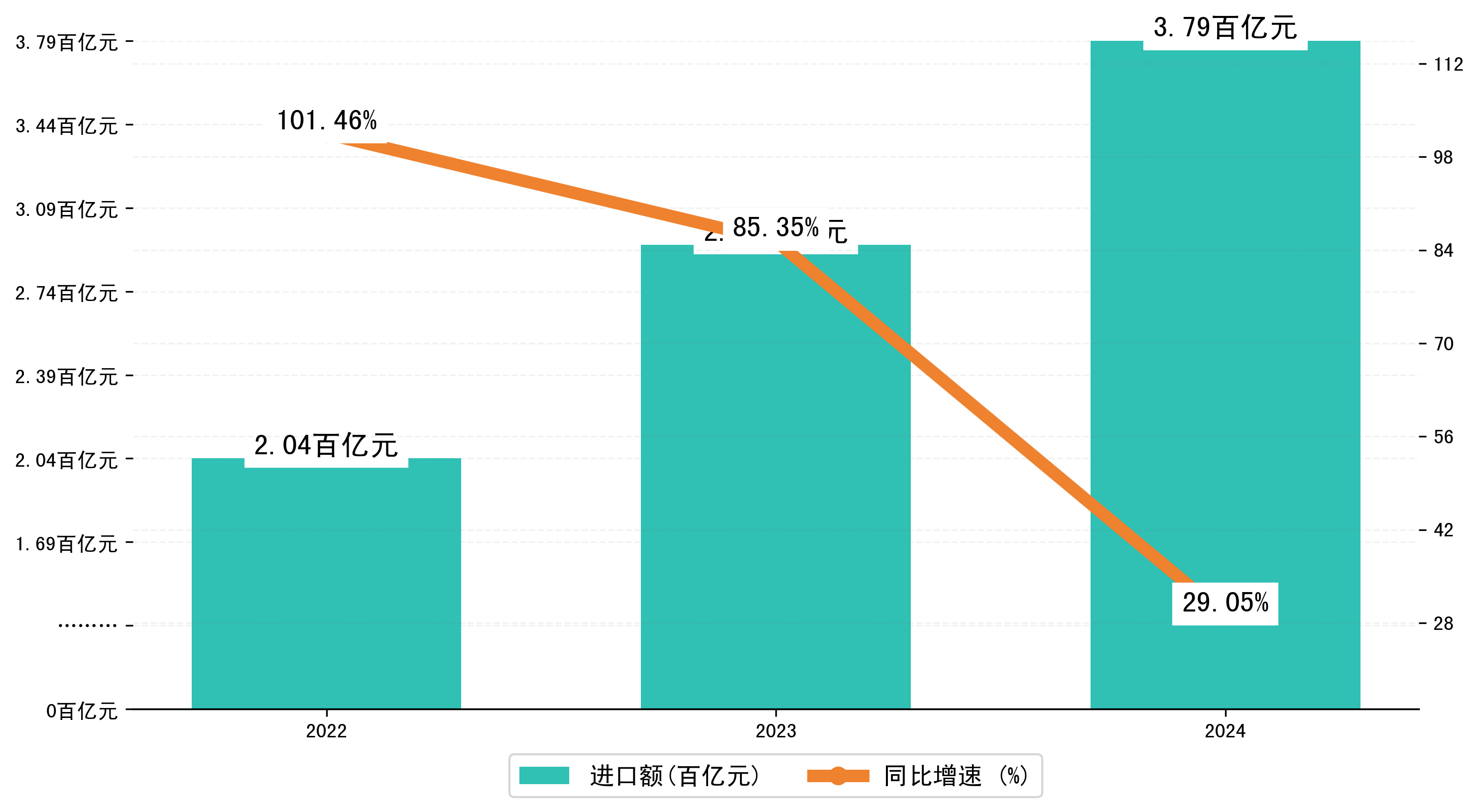 以人民币计,2024年1-7月新疆维吾尔自治区进口额为378,7789.669万元,相比上年同期增加了85,2736.0681万元,同比增加了30.20%。