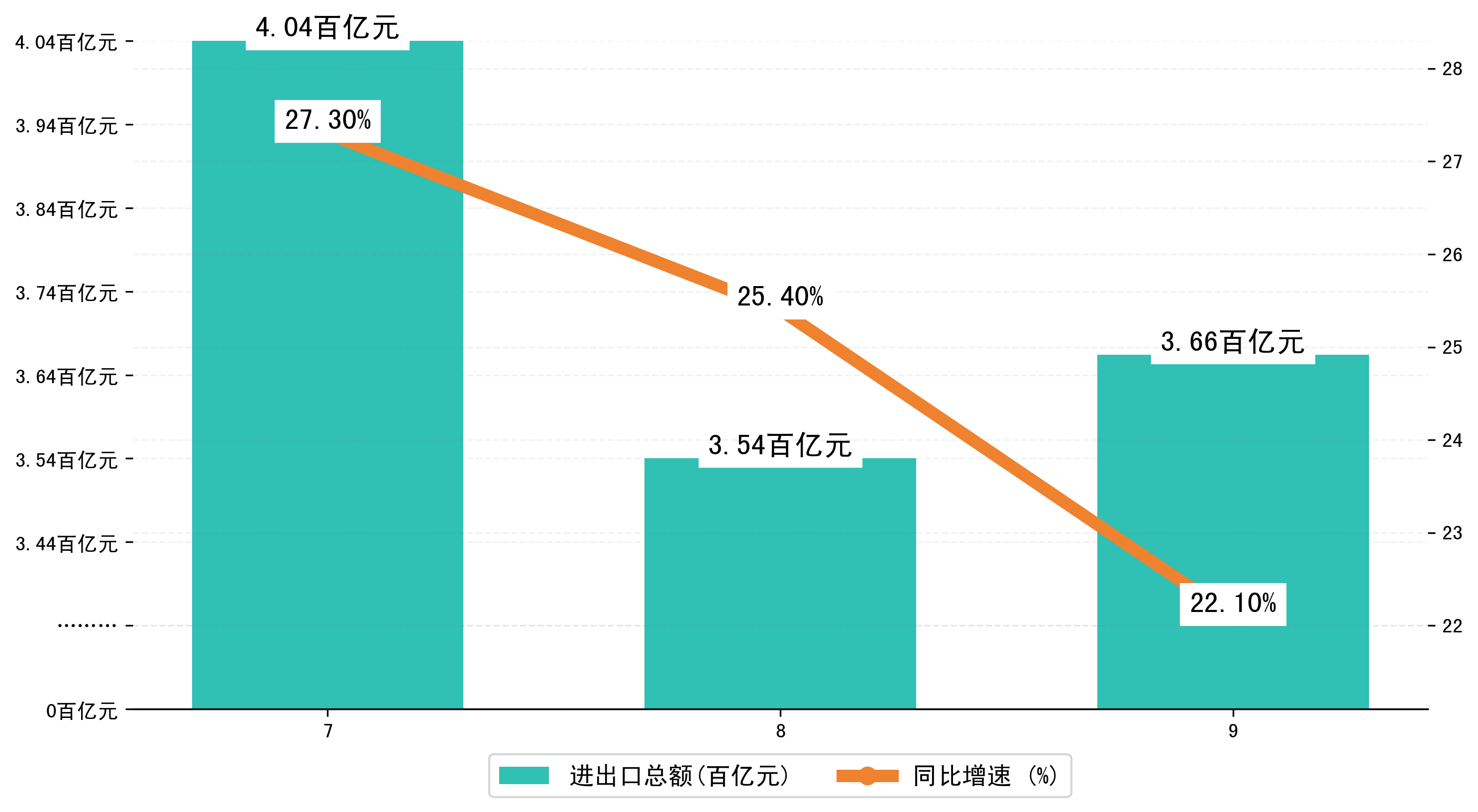 (图一:2025年7-9月新疆维吾尔自治区进出口总额)