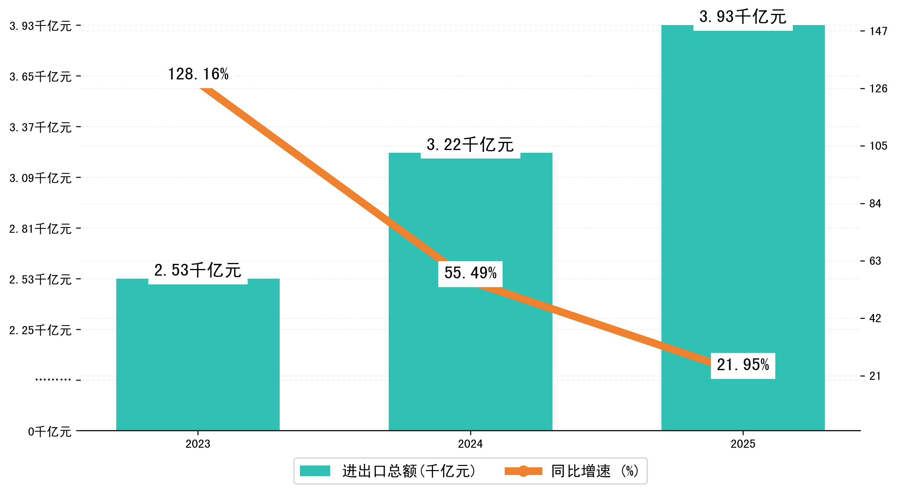 以人民币计,2025年1-9月新疆维吾尔自治区进出口总额为3931,3798.3302万元,相比上年同期增加了707,5140.2717万元,同比增加了22.10%。