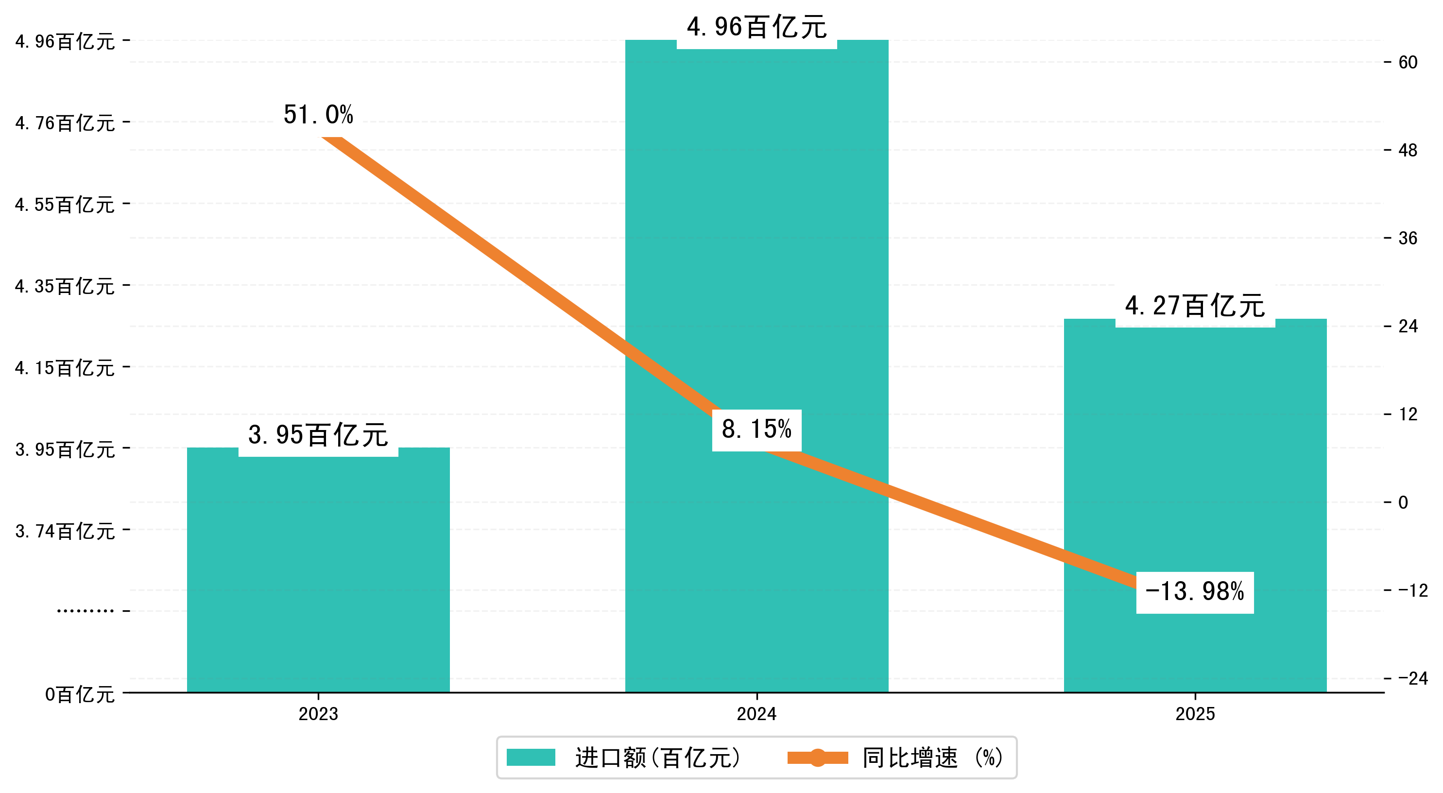 以人民币计,2025年1-9月新疆维吾尔自治区进口额为426,7265.3626万元,相比上年同期减少了69,3611.8855万元,同比减少了-14.30%。